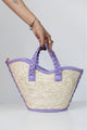 Nous utilisons du Doum blanc de Marrakech, le plus beau et le plus solide. Notre cuir d'agneau provient de stocks de grandes marques pour réduire notre consommation. Nos artisanes sont formées à la maroquinerie dans notre atelier à Marrakech.